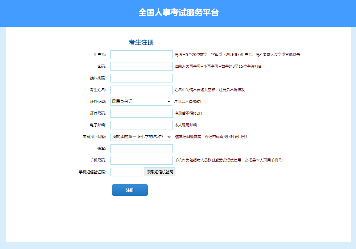 第二步:點(diǎn)擊“注冊(cè)”,進(jìn)入考生注冊(cè)頁面,考生注冊(cè)填寫個(gè)人信息