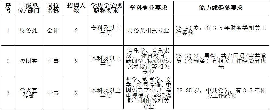 (二)行政、教輔部門(mén)人員招聘崗位