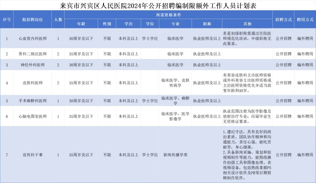 原文標(biāo)題:速看!來賓市興賓區(qū)人民醫(yī)院招聘編制限額外工作人員10名
