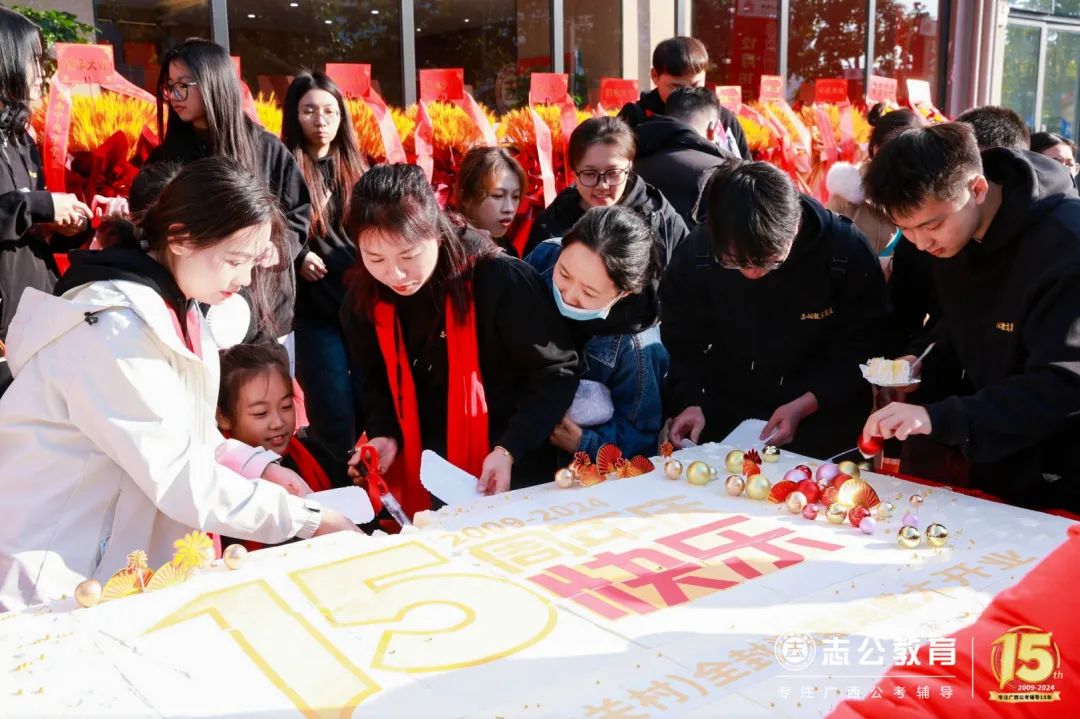 這個蛋糕不僅象征著志公走過的15個輝煌歲月,更代表了志公未來更加美好的明天。在場的所有員工都分享了這份喜悅和甜蜜,共同祝愿志公教育越來越好。