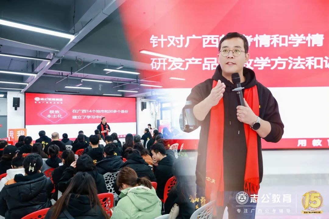 第一是極致本土化,董事長李勇表示這是志公教育集團(tuán)安身立業(yè)的根本,他表示這要求對廣西公職考試響應(yīng)速度要快,針對廣西的考情和學(xué)情,研發(fā)產(chǎn)品教學(xué)方法和課程資料,這是對教研院的考驗(yàn),明確表示未來要把錢投在學(xué)員的服務(wù)上、老師的數(shù)量、學(xué)習(xí)班主任。志公教育現(xiàn)在有志公教育(保稅區(qū))全封閉基地,志公教育(中關(guān)村)全封閉基地,未來希望在桂林,柳州,百色等地也建立基地,讓志公教育在八桂大地生根,實(shí)現(xiàn)各美其美,美美與共。