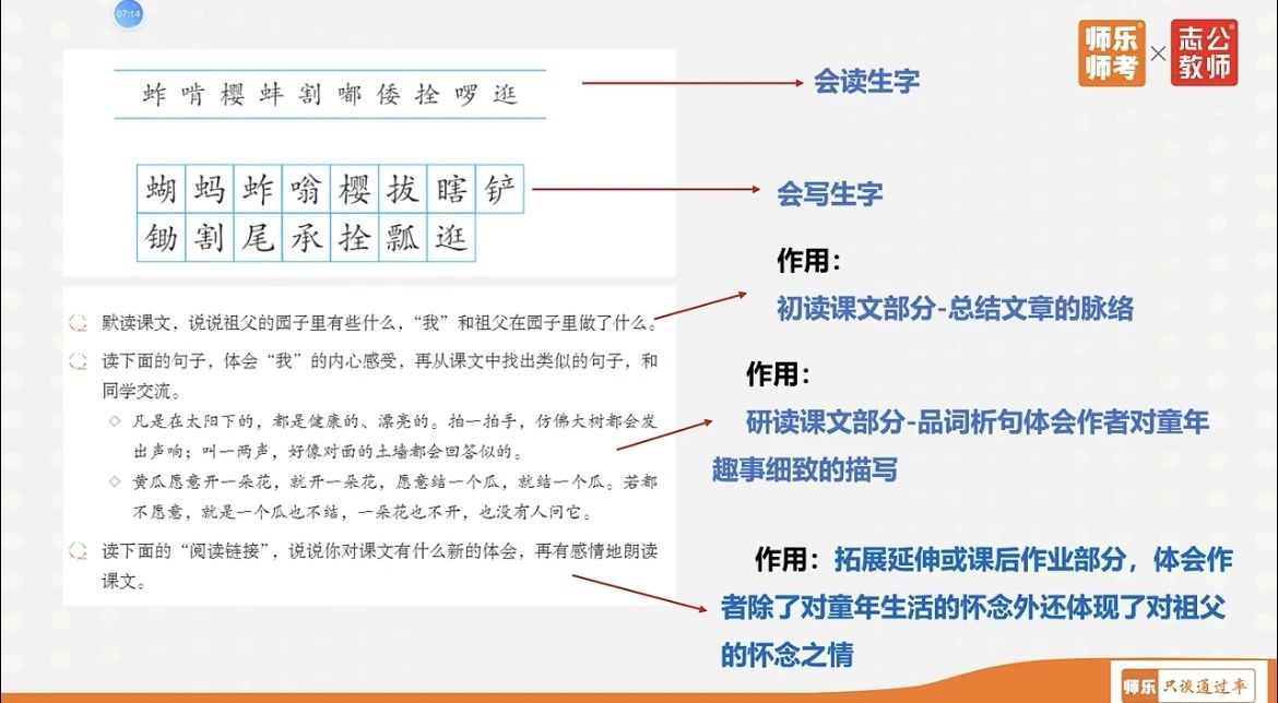 特惠價:199元 ?結(jié)合歷年考情,分模塊系統(tǒng)梳理考試篇目 ?分篇目分步驟詳解教學(xué)設(shè)計,提升備課速度 毫無思路怎么辦? 缺乏知識儲備怎么辦? 網(wǎng)課將精選核心課型 深入進(jìn)行教材梳理 網(wǎng)課內(nèi)容示例 ↓↓ 搶先體驗價:3.9元 ??語/數(shù)/英/幼/音/體/美/文綜/理綜 ??各學(xué)科高頻??计?/p>