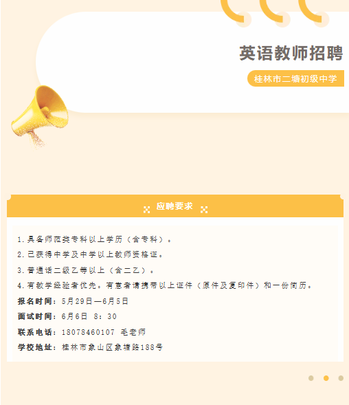 原文標題:桂林市二塘初級中學招聘英語老師一名