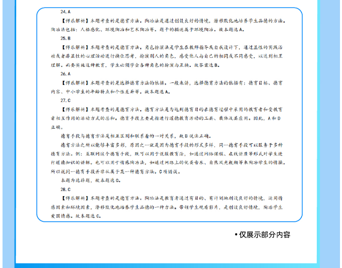 匹配考綱要求,精選50個(gè)核心考點(diǎn):銘師組團(tuán)精研,基于考綱收錄《教育學(xué)與教學(xué)法基礎(chǔ)知識(shí)》《教育心理學(xué)與德育工作基礎(chǔ)知識(shí)》核心考點(diǎn),重點(diǎn)突出,幫助考生學(xué)習(xí)記憶。