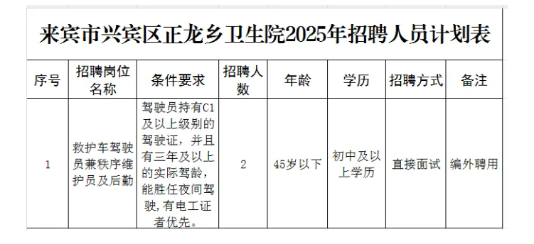 2.報名地點:來賓市興賓區(qū)正龍鄉(xiāng)衛(wèi)生院辦公室(住院樓三樓)。