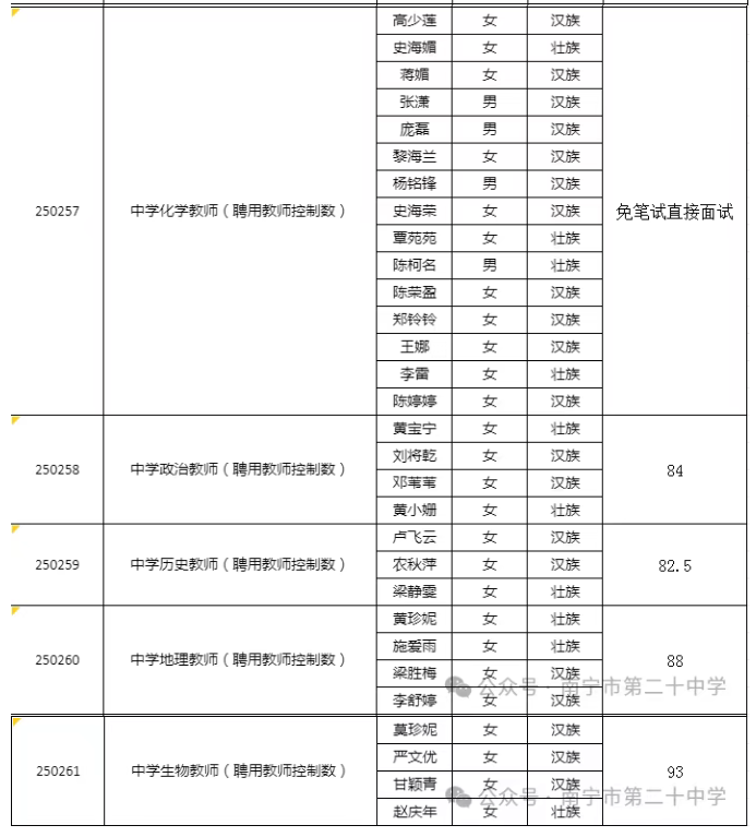 南寧市第二十中學(xué)2025年公開考試招聘中小學(xué)教師面試入圍人選資格審查通知