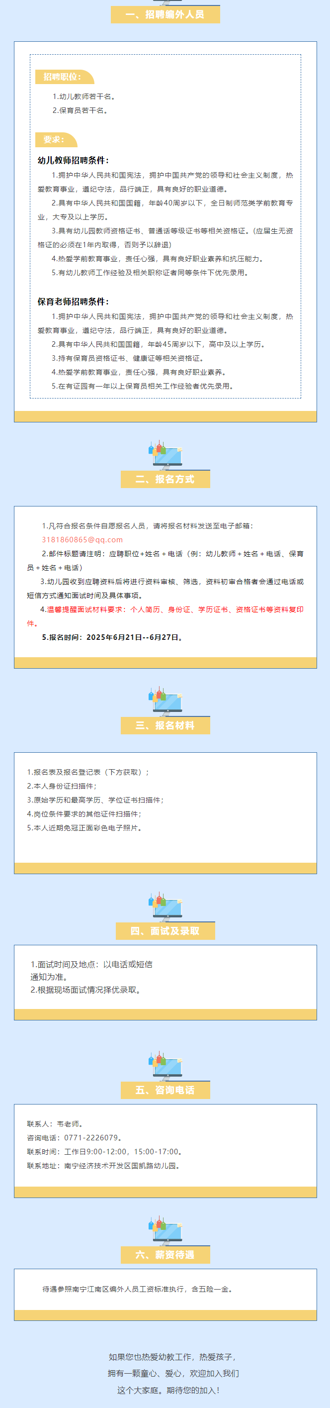 2025年南寧經(jīng)濟技術(shù)開發(fā)區(qū)國凱路幼兒園招聘編外人員若干人