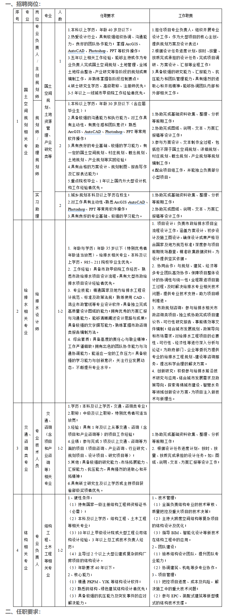4.應(yīng)聘技術(shù)人員具有一線城市甲級設(shè)計(jì)院3年以上工作經(jīng)歷者優(yōu)先。