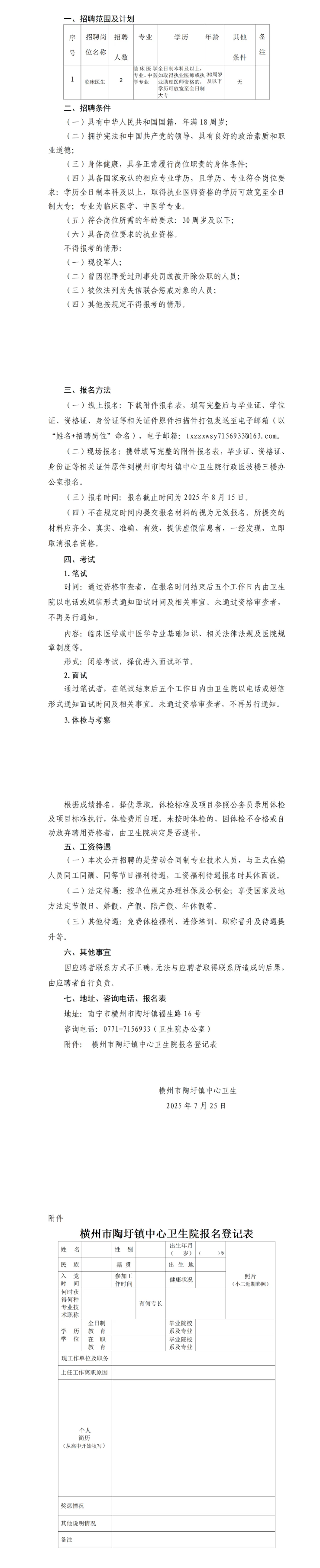 橫州市陶圩鎮(zhèn)中心衛(wèi)生院公開招聘編外衛(wèi)生專業(yè)技術(shù)人員的公告