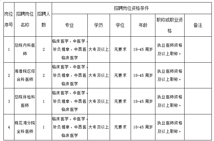 具體招聘辦法由港口區(qū)人民醫(yī)院人事科負責(zé)解釋。