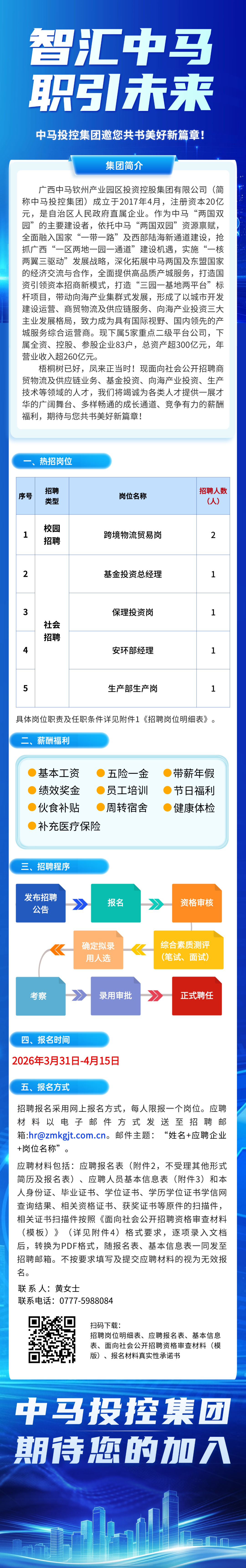 原文標(biāo)題:2026年中馬投控集團招聘公告
